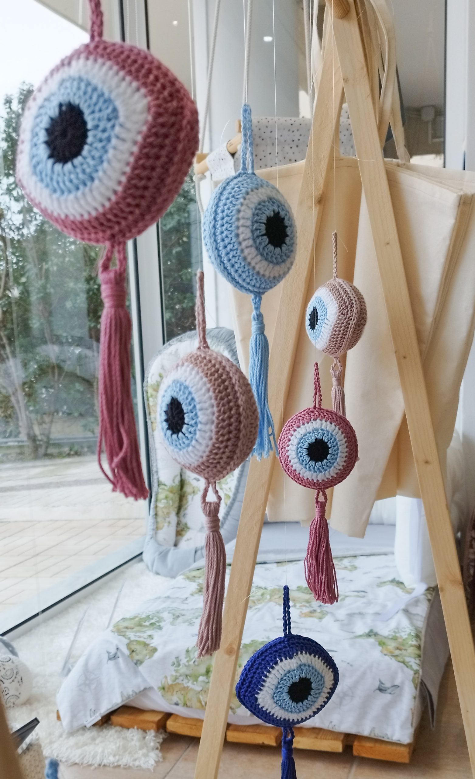 Διακοσμητικό πλεκτό ματάκι για το καρότσι ή την κούνια του μωρού.